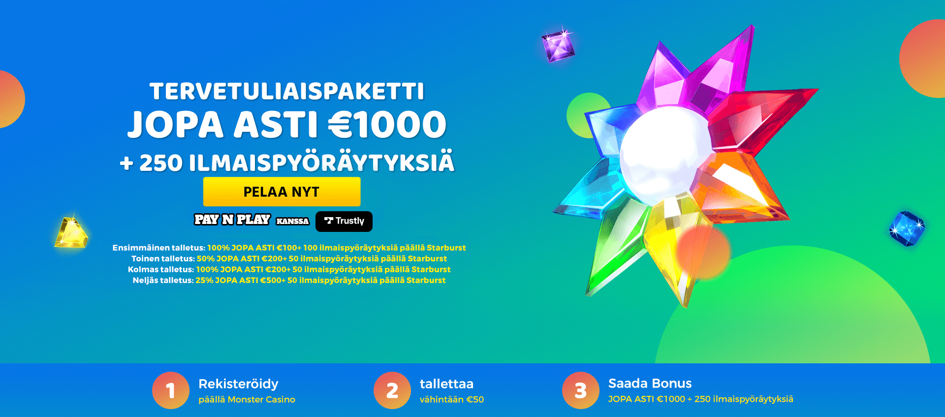 3. Enjoy Welcome Package up to € 1000 + 250 Free Spins on Starburst on your first 4 deposits.